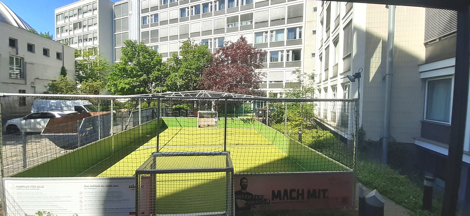 Ein grüner innenhof mit Sitz- und Picknickmöglichkeiten sowie zahlreichen Sportangeboten wie Kleinspielfeld, Streetball oder Boulebahn – und das mitten in der Stadt, ganz in der Nähe des Bahnhof Zoos. Auf einer kleinen Freifläche ist dieses Wunder entstanden.